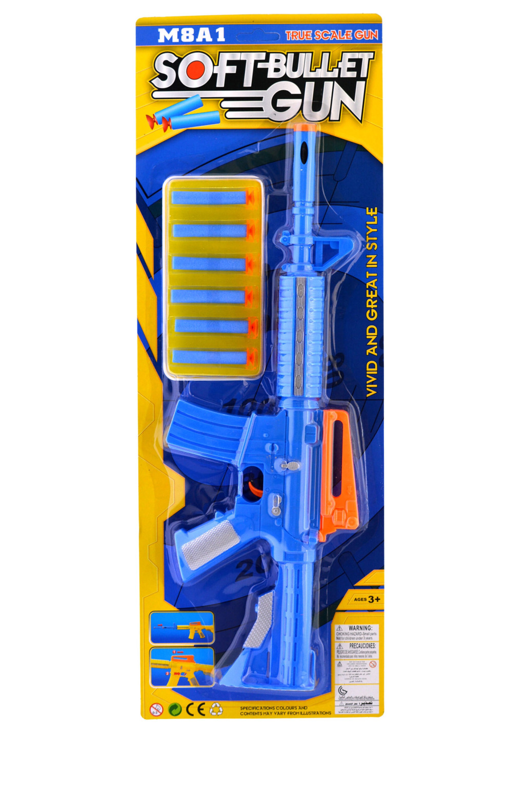 Szivacs lövedék kilövő puska klt., 6 lövedék, 2 szín, 19x53 cm lapon