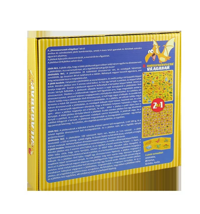 Társasjáték, A Dinoszauruszok világában, 2 játék egyben, 25x25 cm dob.
