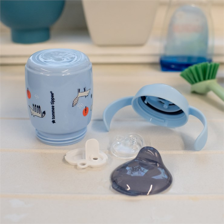 A kétoldalt található ergonomikus fülek segítik a stabil fogást, ezzel támogatva a baba önálló ivástanulását. A pohár leejtés- és dobásálló, tartós, BPA-, BPS-, PVC- és ftalátmentes anyagból készült, így maximálisan biztonságos a használata. Minden része mosogatógépben tisztítható és sterilizálható.