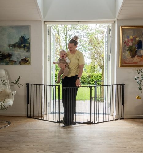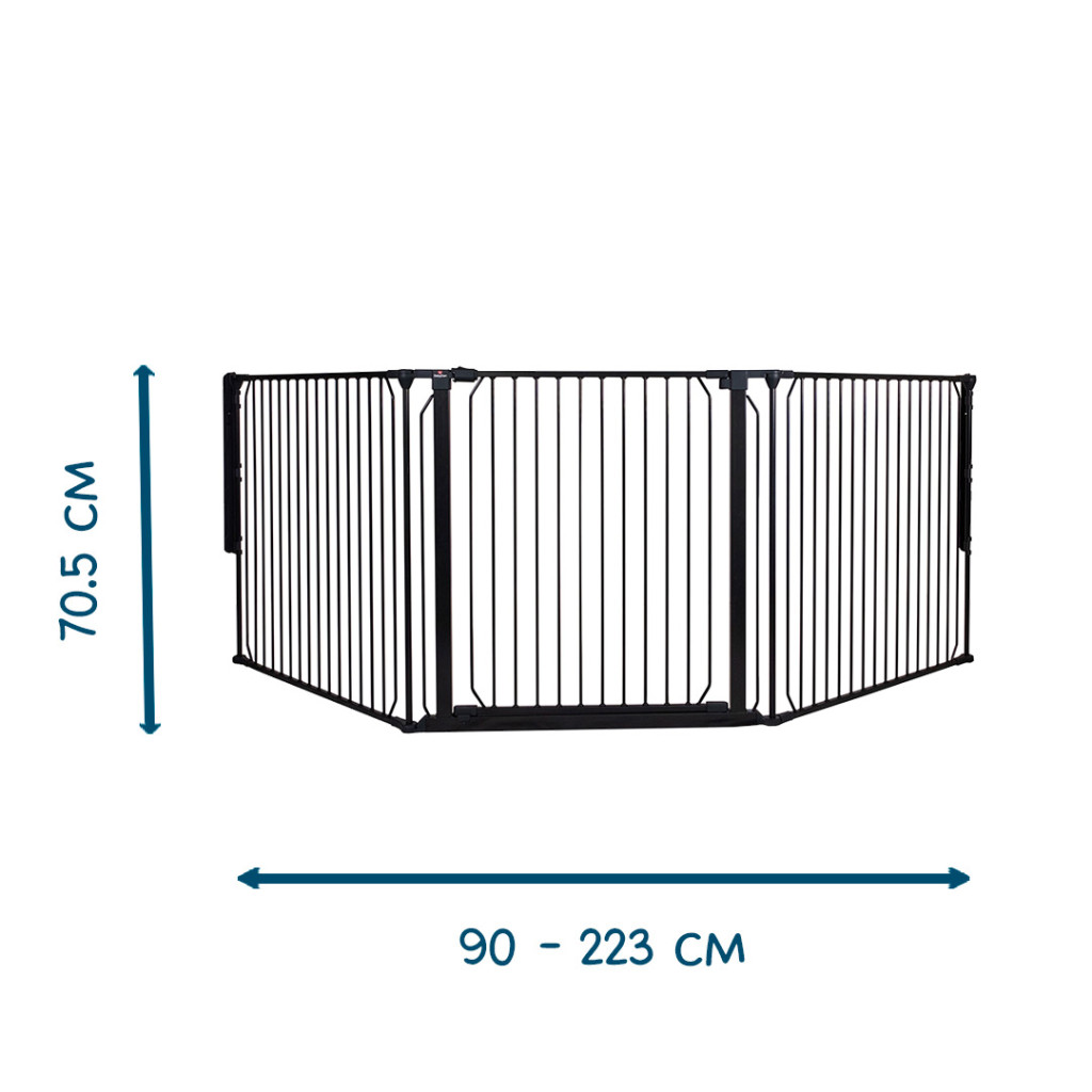 A Carl X Wide a rugalmasságot szem előtt tartva készült. A rács különböző szögekbe állítható, hogy illeszkedjen a helyiség formájához – akár félhold formát, akár enyhén ívelt kialakítást szeretne. Szabadon elhelyezheti a térkorlát egyes részeit úgy, hogy a legjobban illeszkedjen az Ön helyéhez. Könnyedén átjuthat a rácson a széles, egy kézzel mindkét oldalról nyitható ajtónak köszönhetően – ez hasznos funkció egy mozgalmas életben. Rugalmas kialakításának és robusztus felépítésének köszönhetően a BabyDan Carl X Wide megbízható megoldás a nagyobb terek biztonságos környezetének megteremtésére. Tetszőleges számú toldalékkal korlátlanul meghosszabbítható (33 vagy 72 cm-es toldalék külön vásárolható meg)