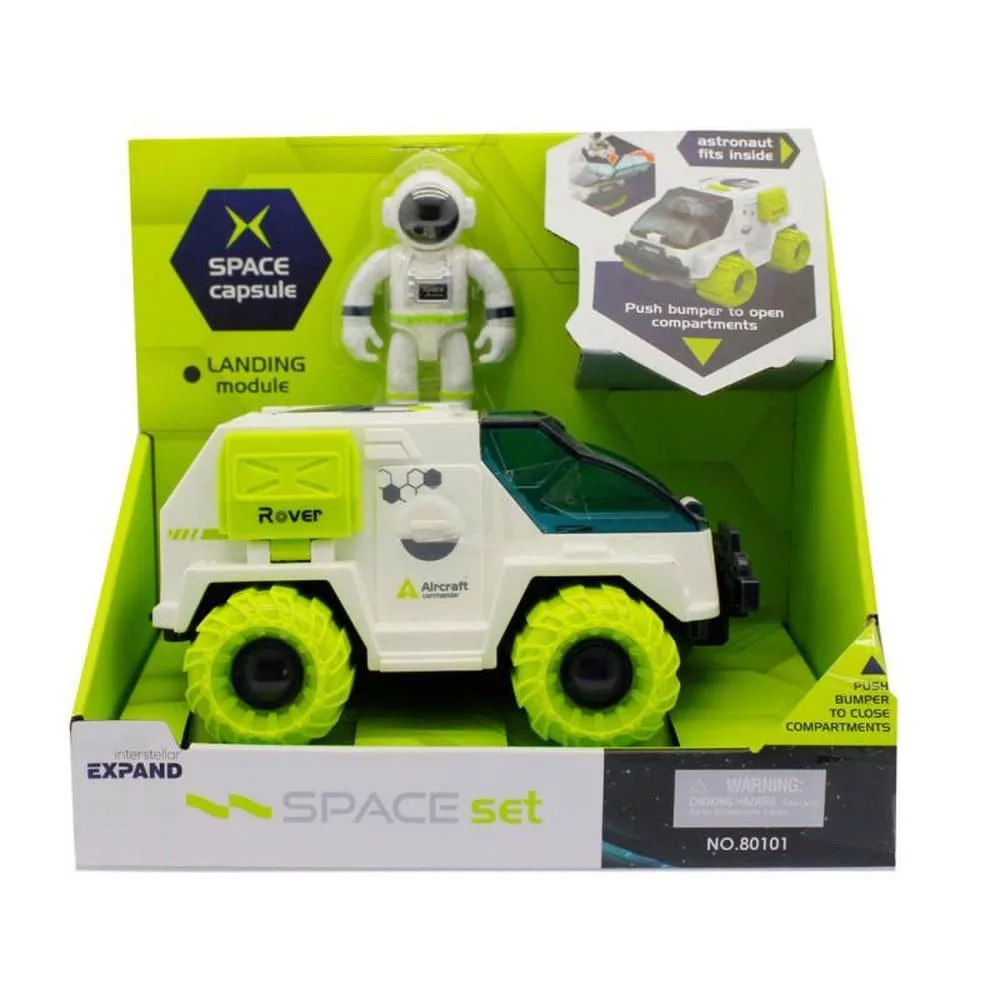 Űrhajós készlet: lendkerekes holdjáró és figura, 21x18 cm.
