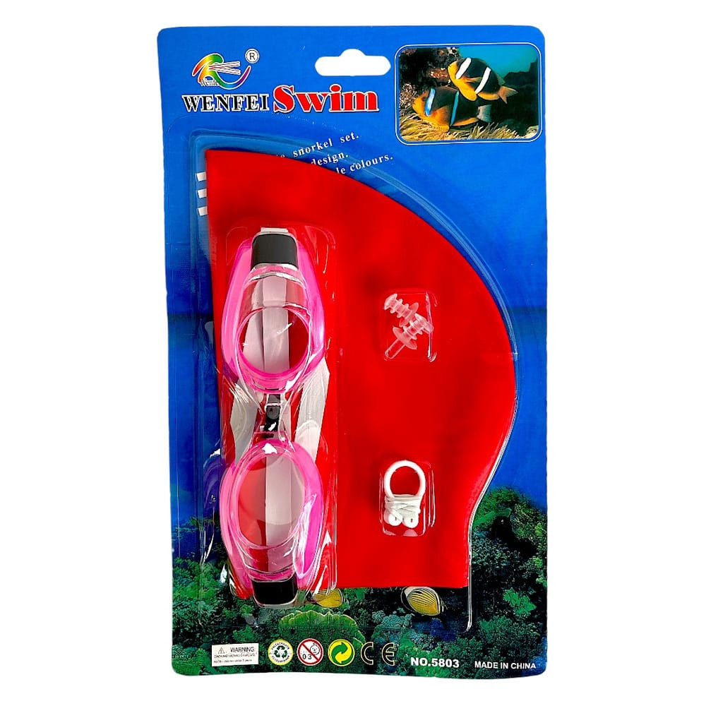 Színes úszószemüveg és sapka szett gyerekeknek, 14x28 cm.