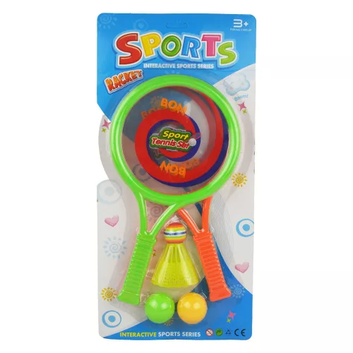 Ütő készlet: 2 labda, tollasütő, 23x47 cm, gyerekeknek.