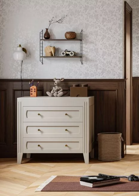 A VOX Milenne időtlen és vintage ihletésű dizájnnal rendelkezik, hogy megfeleljen a modern és hagyományos elvárásoknak egyaránt. A faragott részletek, az aranyfém fogantyúk egyszerűek és mégis visszafogottak. A pelenkázó toldalék felszerelésével a komód lehetővé teszi a baba biztonságos és kényelmes gondozását, ugyanakkor helyet biztosít a kozmetikumok és pelenkák tárolására is. Az a nagyszerű ebben a darabban, amikor a pelenkázó egységre már nincs szükség, eltávolítható, és gyönyörű komóddá varázsolható, amely együtt nőhet a kicsivel. Lágyan záródó fiókok a biztonság érdekében.