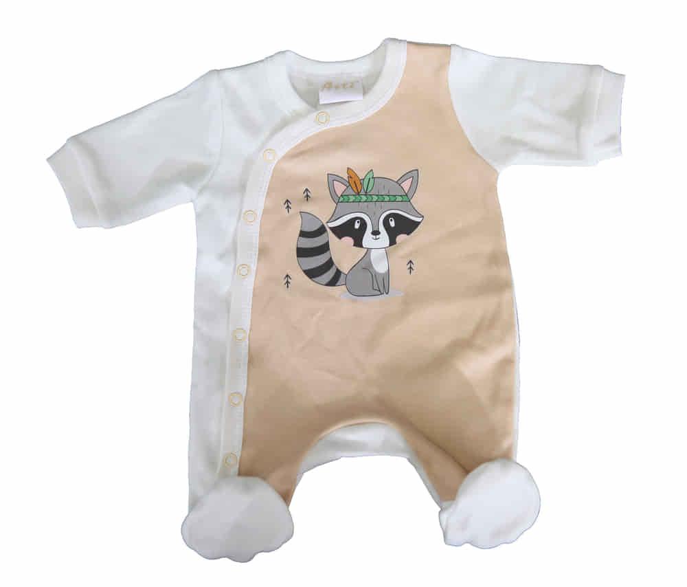 Öltöztesd be a gyermeked ezzel a trendi, mosómedve mintás rugdalózóval, amely azonnal a kedvencévé válik. A rugdalózó elöl patentos, ami megkönnyíti a peluscserét és az öltözködést - tökéletes választás újszülötteknek és az első néhány hónapban. A 100% pamut anyag garantálja a kényelmet és a tartósságot, míg a moshatóság megkönnyíti a szülők életét. A legjobb? Ez egy minőségi magyar termék, ami nikkelmentes patenttal készült, így semmilyen allergiás reakciót nem vált ki az erre érzékeny babáknál. Egy gyönyörű homok színű ruhadarab, ami minden kisfiúnak jól áll.