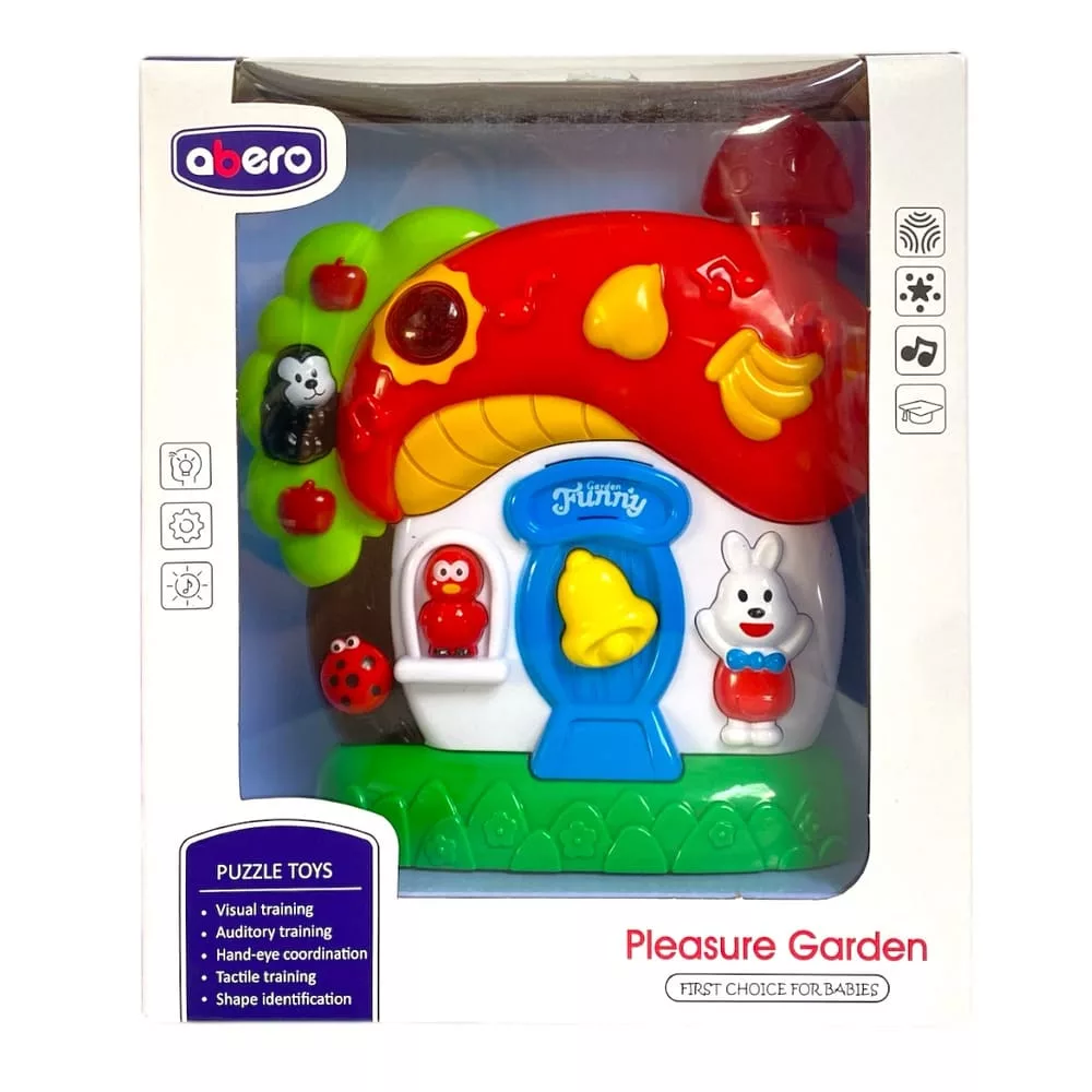 Zenélő bébi játék, el., gombaház forma, 23x24 cm dob.