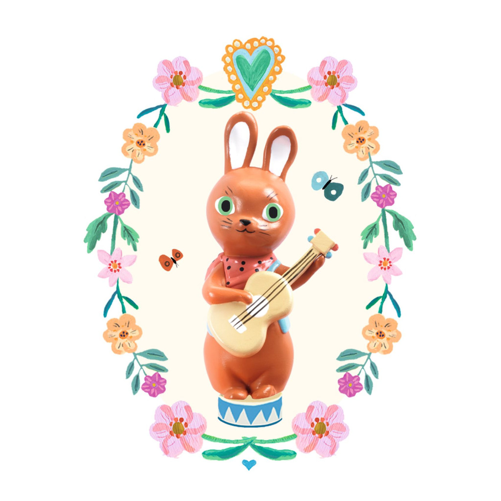 A zene örömet és szórakozást nyújt, a doboz pedig tárolóhelyet kínál az ékszereknek és egyéb apró cikkekhez. A dobozban belül van egy tágas rekesz puha bársonnyal bélelve. A zenélő doboz hátulján található a felhúzókulcs. Csak annyit kell tennie, hogy néhányszor finoman elforgatja, hogy a doboz fedelének felemelése után a zene megszólaljon, és közben a gitározó nyúl körbe forogjon Antoine Renard: Le temps des cerises című zenéjére. Gyönyörű illusztrációk és romantikus színek teszik ezt a zenélő dobozt a gyerekszoba tökéletes kiegészítőjévé. Szép ajándék lehet újszülött látogatás alkalmából.
