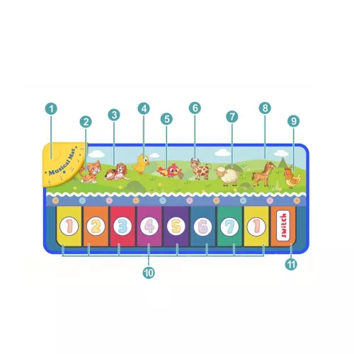 Zenélő szőnyeg, el., állathangok, 100x40 cm, 42x27 cm dob.