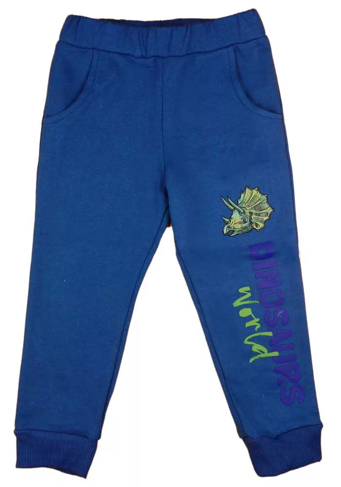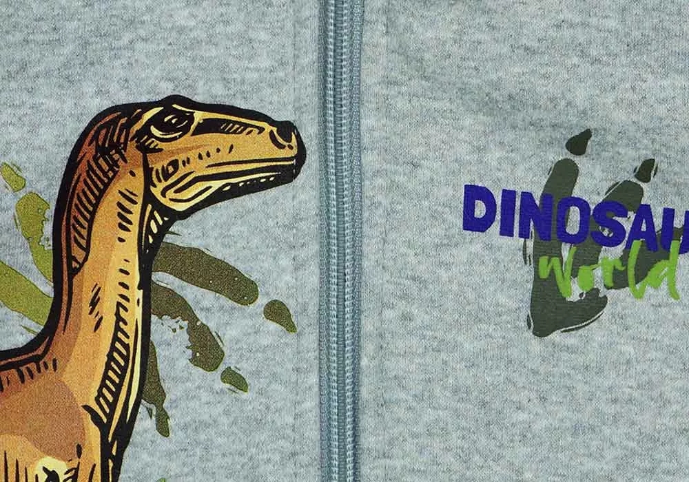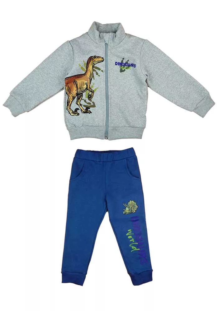 Belül bolyhos fiú szabadidő szett dinós mintával szürke és kék színben