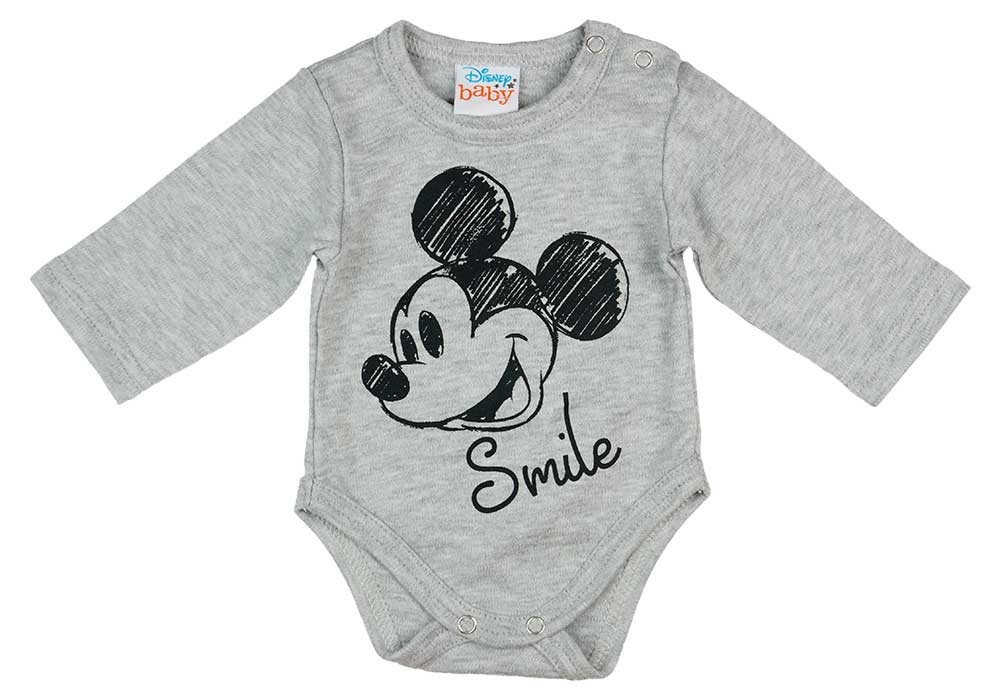 Hosszú ujjú baba body Mickey egér mintával szürke színben