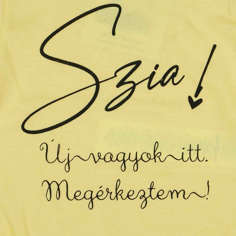 A baba bőre sokszor érzékeny és finom, ezért fontos, hogy a ruháik kényelmesek és minőségi anyagból készüljenek. Ezt a sárga, rövid ujjú feliratos baba bodyt 100% pamutból készítettük, ami lágyan simul a bőrére, és segít megőrizni természetes melegét. A body vékony, nyári viselet, így tökéletes választás a melegebb hónapokra. A lába között praktikus patenttal van ellátva, amely lehetővé teszi a gyors és könnyű peluscserét. A vállán szintén patentos, ami megkönnyíti a kisbabád öltöztetését. Büszkék vagyunk rá, hogy ez a termék magyar munka eredménye, és a legmagasabb minőségi elvárásoknak is megfelel. Különösen fontos kiemelni, hogy a termék nikkelmentes patenttal készül, így az erre érzékeny babák sem fognak allergiás reakciót tapasztalni. Adja át gyermekének a minőségi ruházat örömét ezzel a cuki feliratos bodyval!
