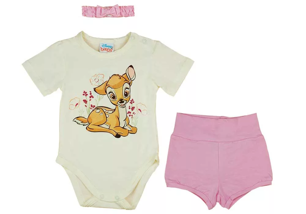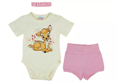 Rövidnadrágos kislány babaruha szett Bambi mintával natúr és rózsaszín színben