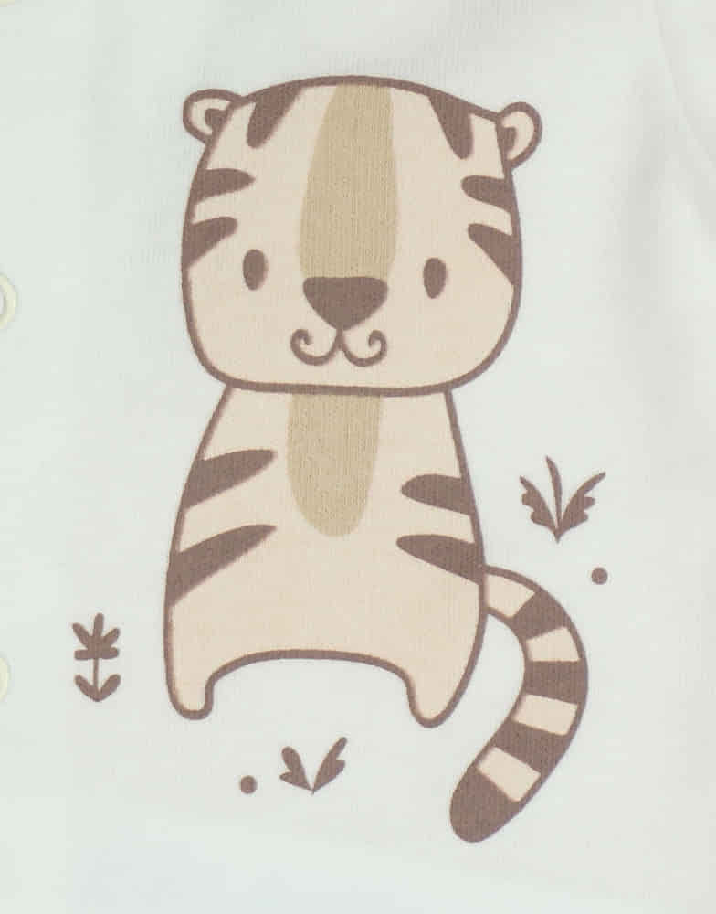 Lágyan öleli körbe a bababőrt ez a minőségi magyar készítésű hosszú ujjú rugdalózó, melynek anyaga 100% biopamut. A természetes nyers színű, tigrismintás kialakítás nem csak a stílusos megjelenést, de a kényelmet is szem előtt tartja. Az elöl és lábon található patentok segítségével a pelenkázás gyerekjáték lesz, miközben a rugdalózó kényelmes, puha viseletet és tökéletes illeszkedést biztosít. Az organikus pamut előnyeit kiaknázva, a rugdalózó vegyszermentes, és ellenőrzött ökológiai gazdálkodásból származik. Nyáron is kényelmes viselet, mivel a pamut anyagának köszönhetően jól szellőzik és elnyeli az izzadságot. A rugdalózó nikkelmentes patenttal készül, így nem vált ki allergiás reakciót az erre érzékeny babáknál. Válassza a természetes anyagokból készült, minőségi babaruházatot a kisbabája számára!