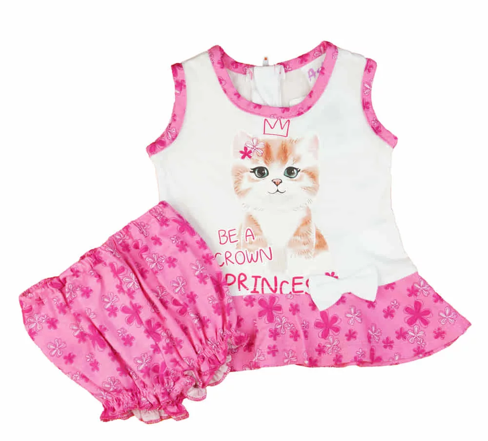 2 részes kislány nyári szett rövidnadrággal, tunikával cica mintával