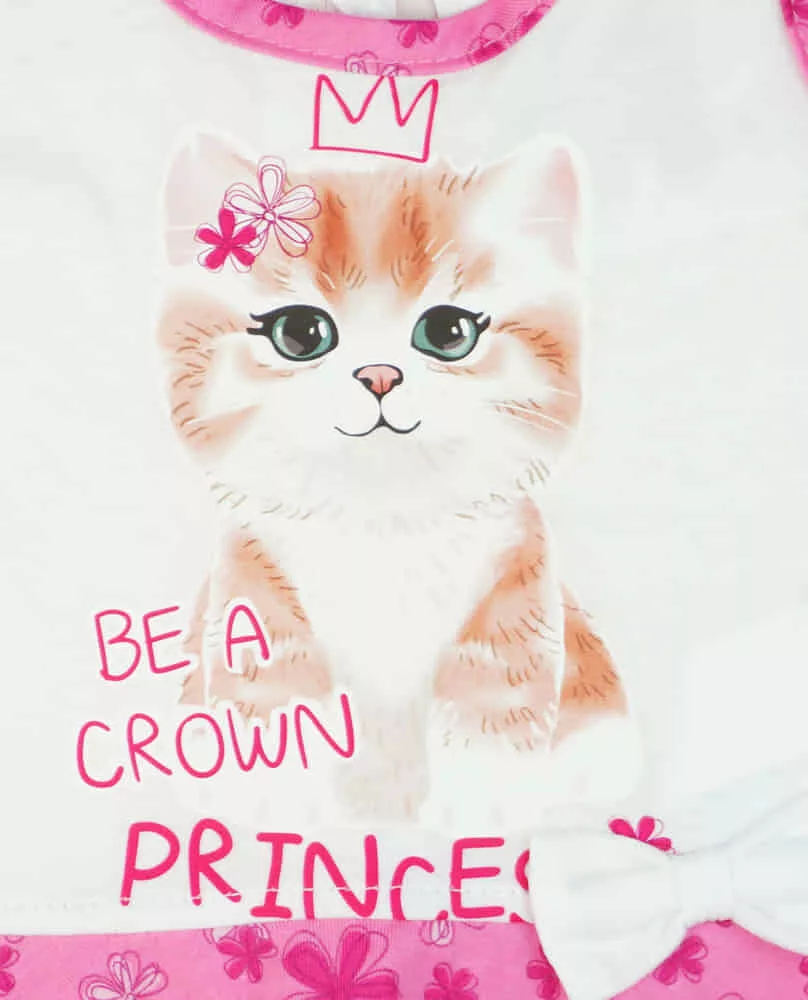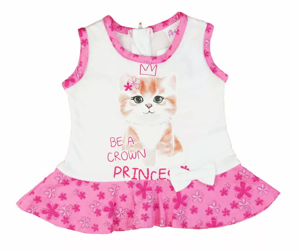 2 részes kislány nyári szett rövidnadrággal, tunikával cica mintával