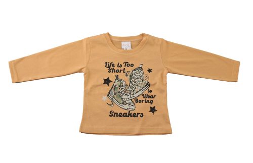 Kiemelkedő minőségű és stílusos megjelenésű hosszú ujjú Sneakers pólót kínálunk kisfiúknak. Az okkerszínű póló tökéletes választás a mindennapokra, legyen szó óvodáról, játszótérről vagy csak egy délutáni kirándulásról. Ez a póló farmernadrággal párosítva igazán csibészes megjelenést kölcsönöz a kisfiúknak. A póló kiváló minőségű, könnyen kezelhető, jól mosható és szín- és formatartó pamut anyagból készült, így garantáltan hosszú ideig megőrzi eredeti állapotát. A termék 100% pamutból készült, így biztosítva a tartós használatot és a kényelmet. Büszkék vagyunk arra, hogy ez a termék magyar minőségi termék, az I. osztály minősítéssel. Adj megjelenést gyermekednek ezzel a hosszú ujjú pólóval, és biztos lehetsz benne, hogy a kisfiúd szeretni fogja viselni!