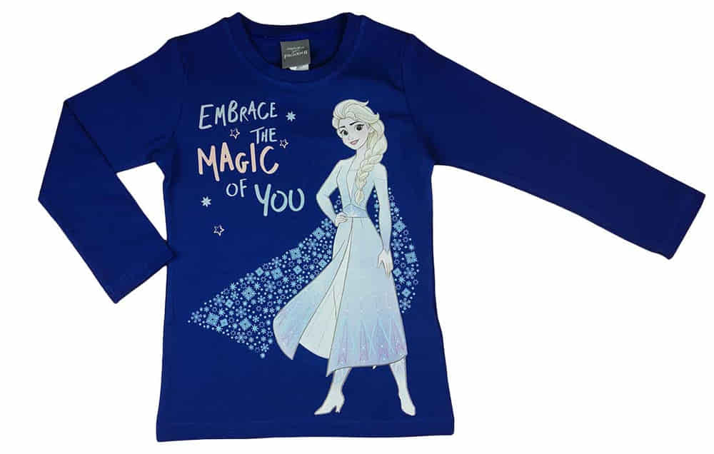 Engedje meg, hogy bemutassuk ezt a gyönyörű hosszú ujjú pólót, amely minden kislány álma! A sötétkék színű pamut póló, melyet a Disney hivatalos Jégvarázs mintája díszít, azonnal kedvenc lesz leánykájának ruhatárában. Az enyhén rugalmas anyag tökéletes komfortérzetet biztosít, legyen szó iskolai napról vagy hétvégi kalandról. A pólót könnyedén kombinálhatja nadrággal vagy szoknyával is - nincsenek határok! A Jégvarázs minta a póló elején található, így garantáltan minden kislány imádni fogja. Kiváló minőségű, könnyen kezelhető, szín- és formatartó anyag garantálja, hogy a póló hosszú távon is megőrizze szépségét. Eredeti Disney termék, melyet Magyarországon készítettek. Anyaga: 90% pamut, 10% elasztán. I. osztályú minőség.