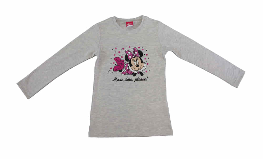Bájos Disney Minnie hosszú ujjú póló, amely bármely kis lány szekrényének kedvenc darabja lesz! A szürke színű, hosszú ujjú pólón vidám Minnie minta található, ami garantáltan mosolyt csal az arcára. A póló Magyarországon készült, ezáltal biztosak lehetünk a minőségében. Az anyagösszetétel 90% pamut és 10% elasztán, ami a kényelmet és a tartósságot is biztosítja. Ez a póló egy igazi must-have minden Disney rajongó kislány számára. I. osztályú minőség, eredeti Disney termék.