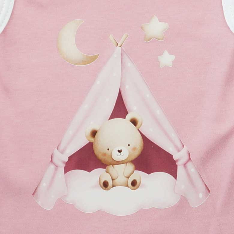 Vidám színben pompázó, ujjatlan rugdalózónk macis mintával egészül ki, amely minden kisbaba gardróbja sztárja lesz! A vékony pamut anyagból készült rugdalózó ideális választás a melegebb napokra, hiszen kiválóan szellőzik és megfelelő komfortérzetet biztosít a baba bőrének. Kifejezetten minőségi magyar termékről van szó, ami garantáltan ellenálló és tartós lesz a sok mosás ellenére is. A rugdalózó 100% pamutból készült, ami az I. osztályú minőséget képviseli, így nem csak szép, de rendkívül kényelmes is a kicsik számára. Nikkelmentes patenttal lett ellátva, így az erre érzékeny babák sem fognak allergiás reakciót tapasztalni. Engedje, hogy babája a nap minden percében kényelmesen és stílusosan érezze magát ebben a cuki rugdalózóban!