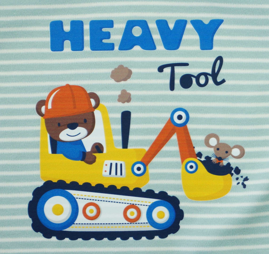 Vékony, pamut rugdalózó Munkagép mintával
