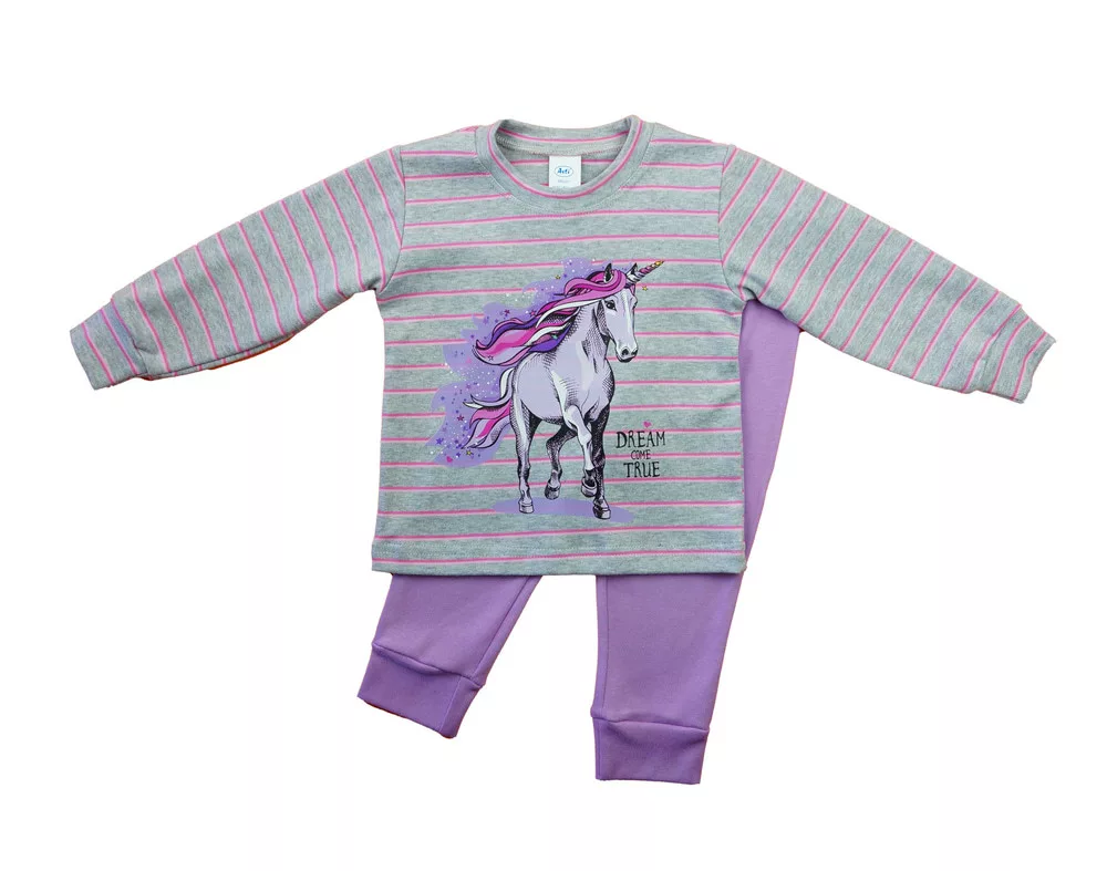 Hosszú ujjú lányka pizsama - Unikornis mintával