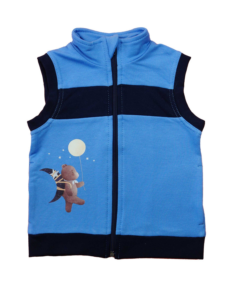 A Belül bolyhos kék kisfiú mellény – Állatos mintával ideális választás minden kalandvágyó gyerek számára. Meleg, kényelmes és stílusos – tökéletes társ az őszi és téli napokhoz.