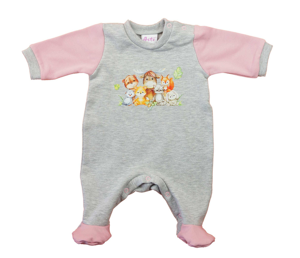 Belül bolyhos, hosszú ujjú baba rugdalózó – Állatos mintával