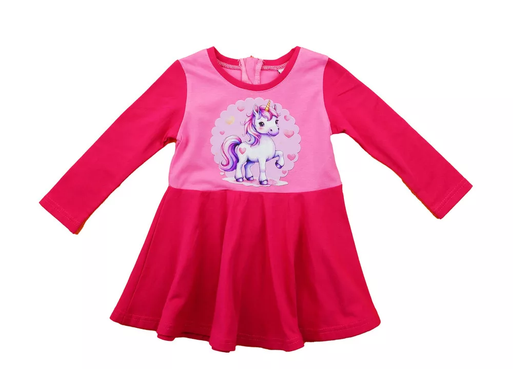 Hosszú ujjú kislány ruha – Unikornis mintával