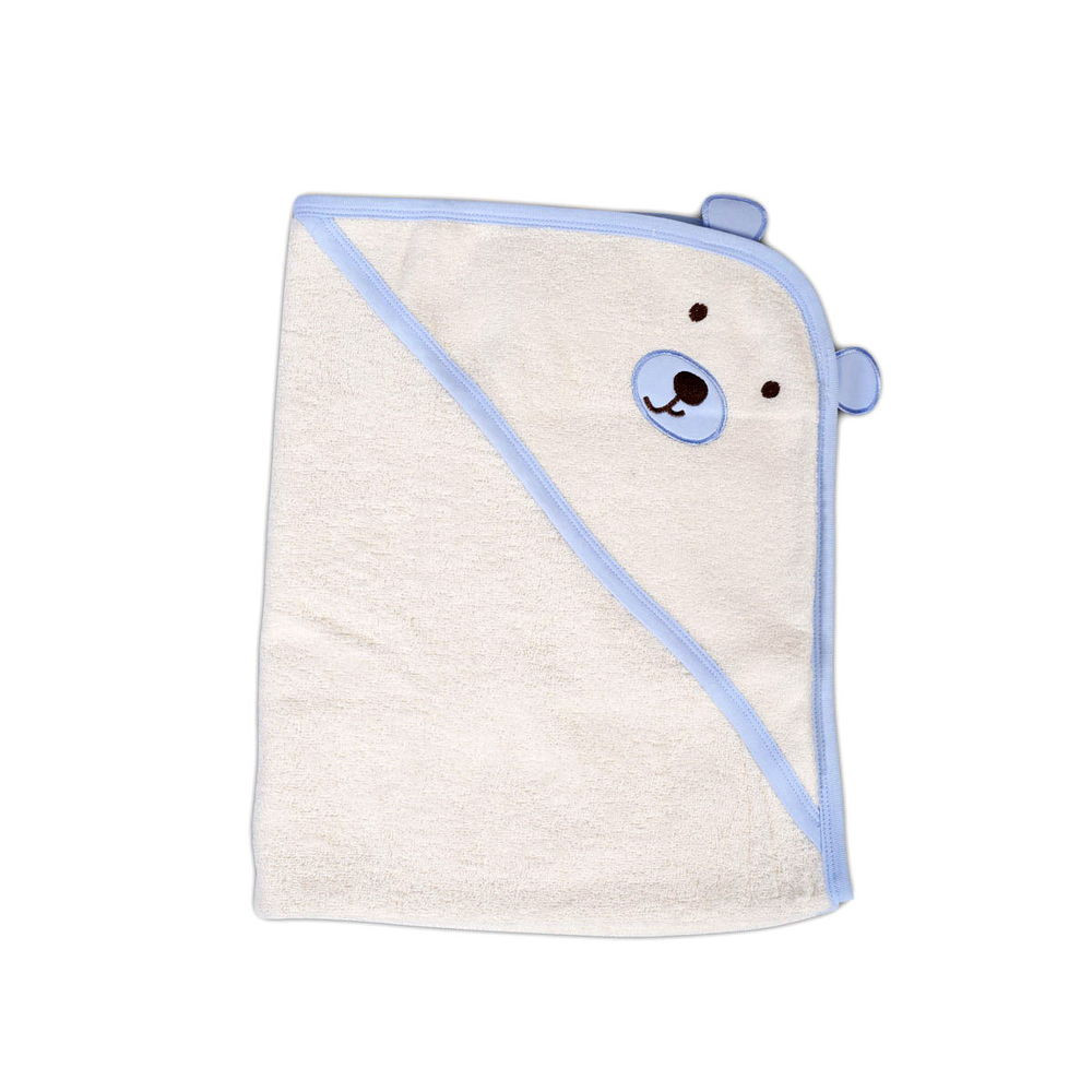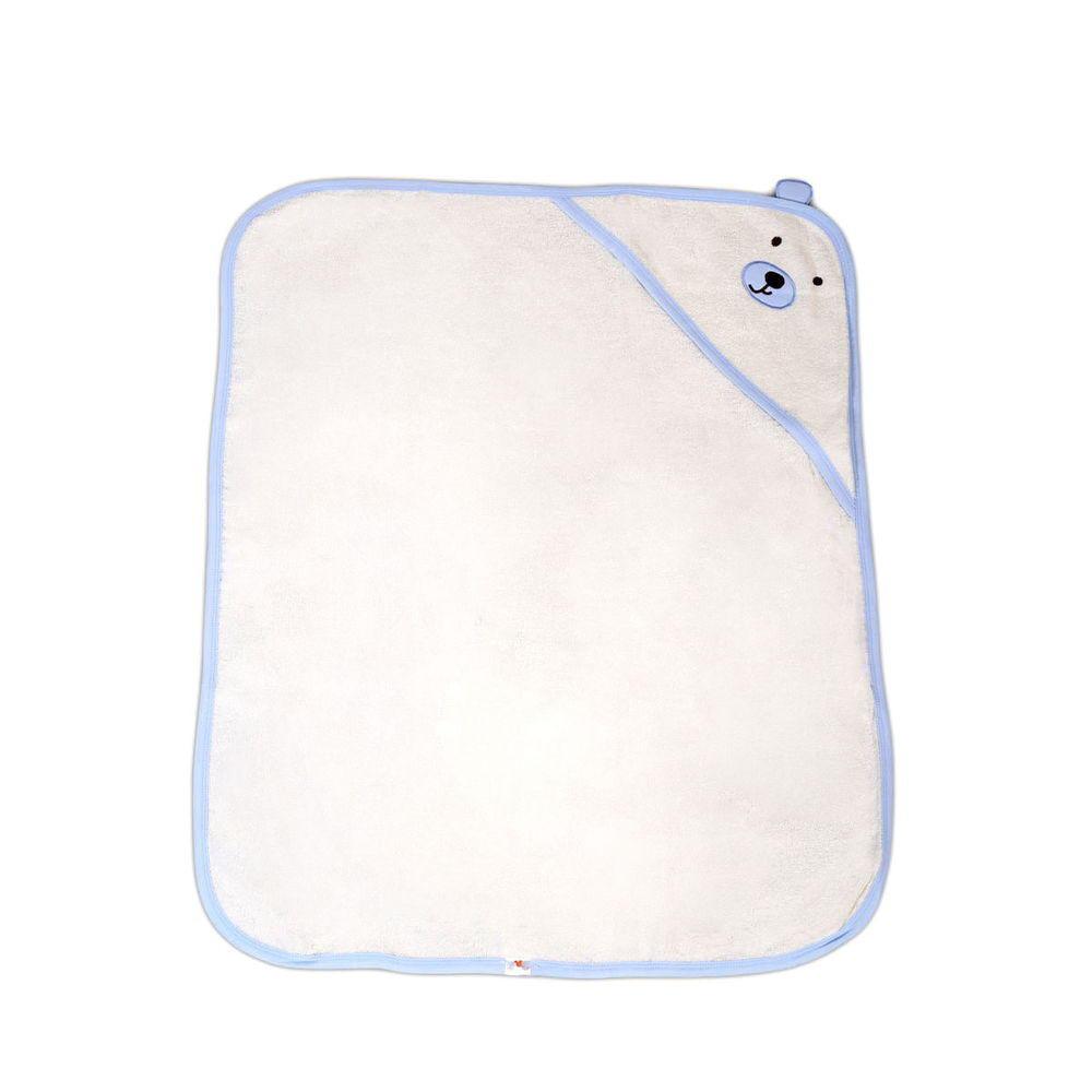 Moni Baloo kapucnis törölköző/pamut maci füles fehér kifogó 70x90cm, szegés kék