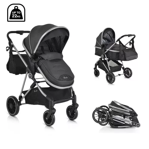 Moni Kali babakocsi 2in1 lapra csukható, megfordítható+táska fekete