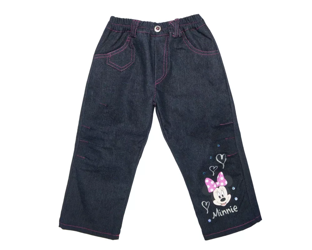 A Disney Minnie gyerek bélelt farmer és kord nadrág a rajongó kislányok számára tökéletes választás. Kedvenc Disney karakterük, Minnie Egér mosolygó arca díszíti a lábszárat, amit a kislányok garantáltan imádni fognak. Kényelmes viseletet biztosít a derékon elhelyezett gumírozásnak köszönhetően, míg a belső bélés melegen tart a hidegebb napokon. Anyaga 100% pamut, ami puha tapintást és hosszan tartó kényelmet biztosít. Az I. osztályú minőségű termék Magyarországról származik. A méretválasztást megkönnyítendő, az életkor irányadó a termékeknél.