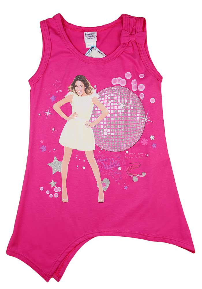 Légy a legstílusosabb a játszótéren ezzel a Disney Violetta trikóval! Különleges fazonja, nagy Violetta mintája és a masnival dekorált pántja igazán egyedivé teszi ezt a darabot. Az ujjatlan felső tökéletes választás a melegebb napokra, a rózsaszín szín pedig minden kislány kedvence lesz. Az eredeti Disney terméket Magyarországon gyártották, garantálva a kiváló minőséget. 100% pamut anyaga pedig biztosítja a kényelmet és a tartósságot. Készülj fel a nyárra ezzel a csinos és vidám trikóval! A terméknél megadott életkor csak irányadó, mindig a gyermek méretét vedd figyelembe vásárlásnál.