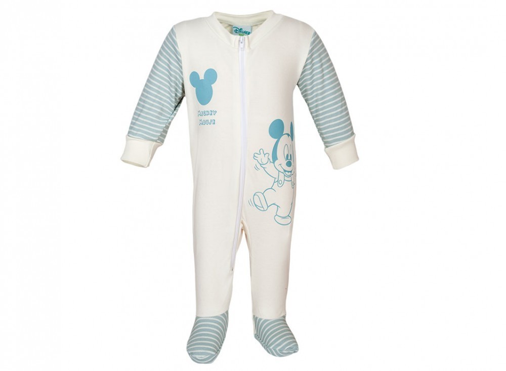 Biopamut Disney Mickey elöl cipzáras hosszú ujjú rugdalózó bézs