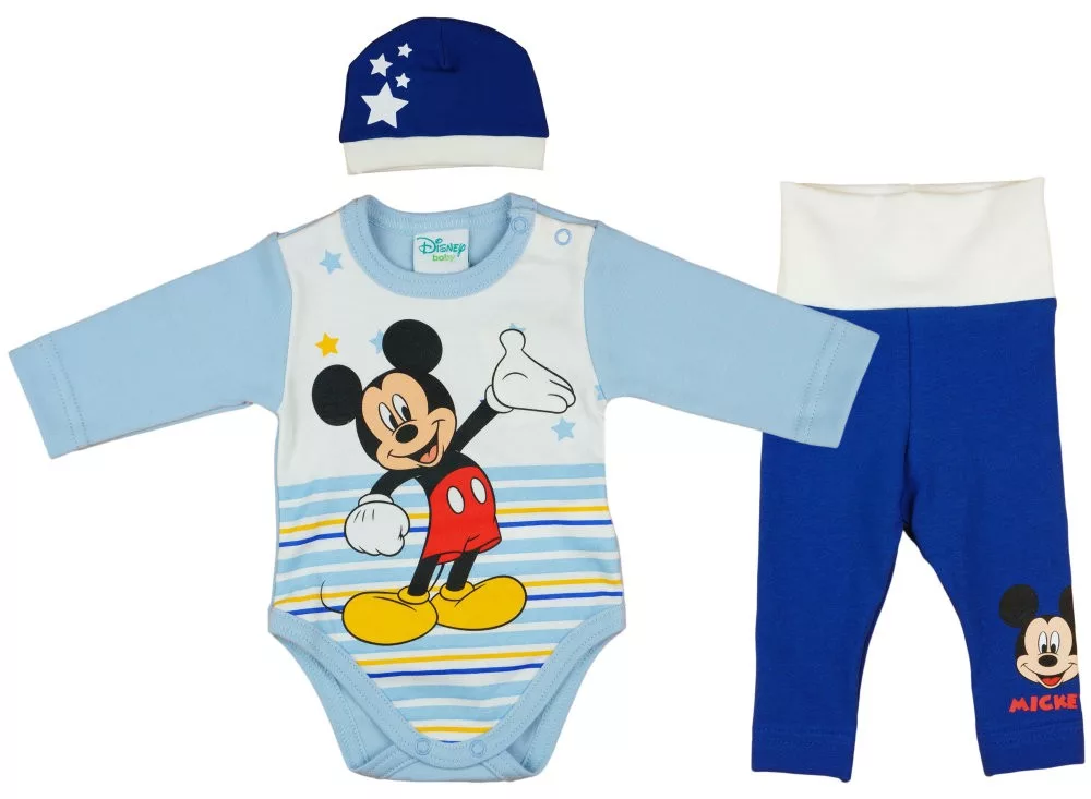 Disney Mickey csíkos| csillagos 3 részes (sapka+body+nadrág) szett