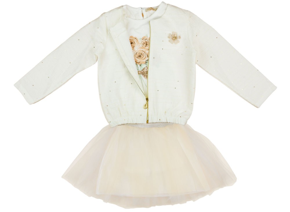 Tüllszoknya, felső és hozzá tartozó kabát teszi különlegessé.