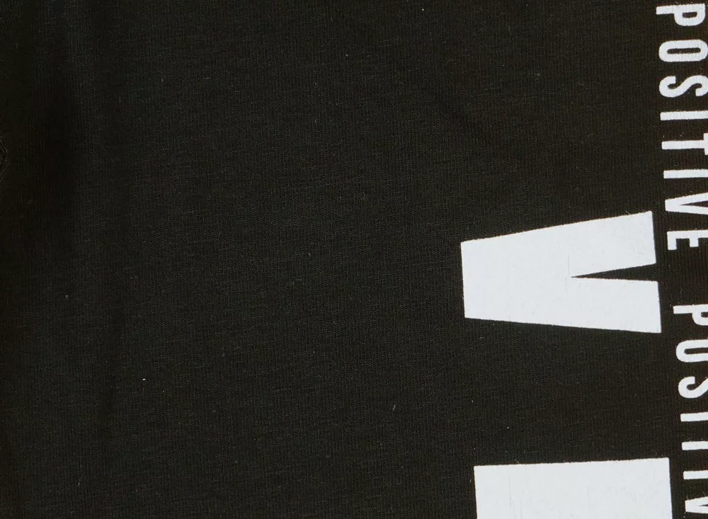 Egyszínű fekete hosszú leggings, gumis derékkal, oldalán fehér felirattal