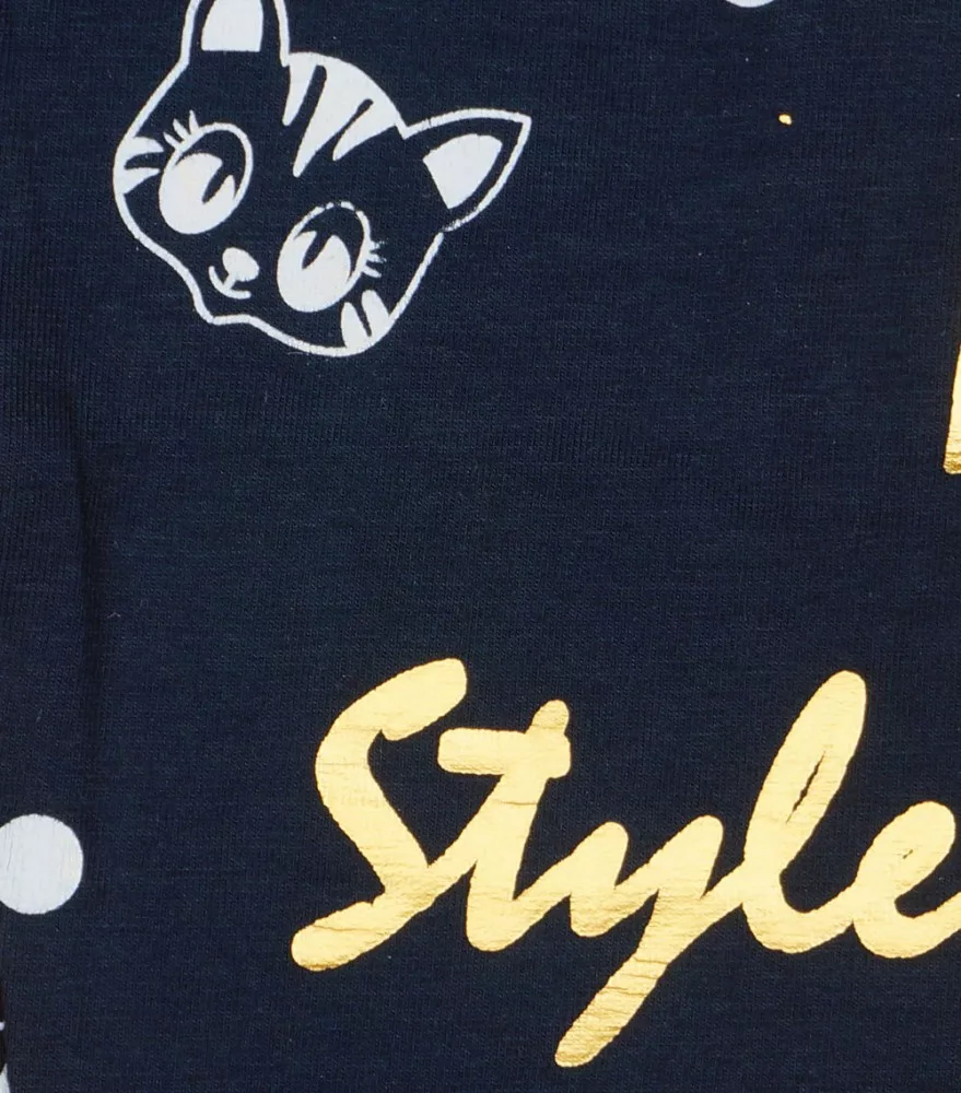 Cica mintákkal nyomott lányka elasztikus pamut hosszú leggings, arany szímű felirattal.