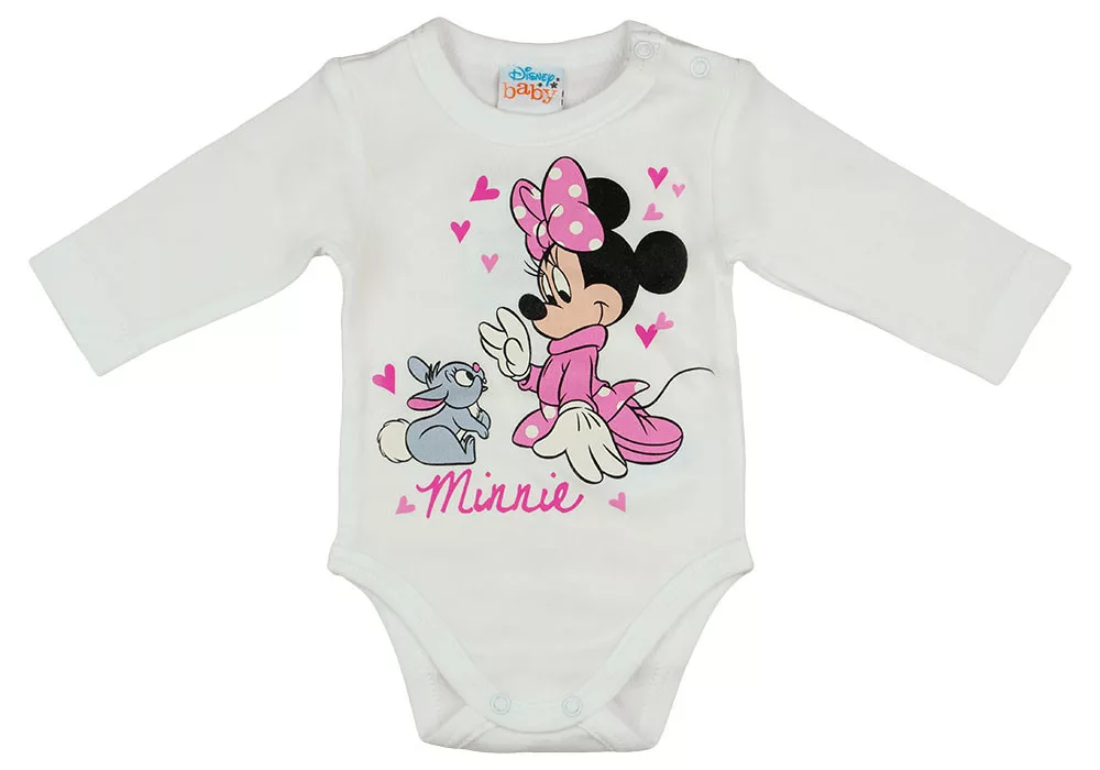 - Minnie mintával nyomott, hosszú ujjú, vállon patentos baba body, kombidressz.