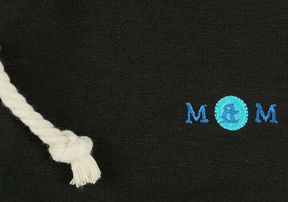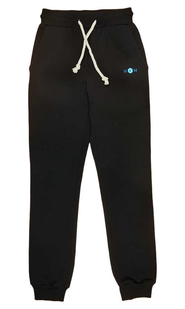 Melegítő anyagú univerzális nadrág, rugalmas 100% pamut anyagból, gumis derékkal, a derékpánton zsinórbehúzással, oldalsó zsebekkel, elöl "ál" sliccel, bokánál passzéval. Hímzett Mini and Me logóval.