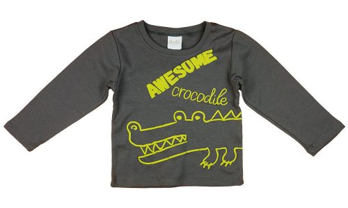 A kis fiúk imádni fogják ezt a szürke színű, hosszú ujjú pólót, amelyen vidám krokodilos minta domborodik. A póló anyaga 100% pamut, ami garantálja a puhaságot és a kényelmet, legyen szó játszóházi mókáról vagy családi kirándulásról. A póló minősége I. osztályú, ami biztosítja, hogy a ruhadarab hosszú ideig megőrizze szépségét és formáját, még rendszeres használat és mosás mellett is. Magyarországról származó minőségi termék, ami a hazai gyártást támogatja. A vidám krokodilos minta segít a kicsiknek a szórakoztató öltözködésben, és minden nap mosolyt csal az arcukra.