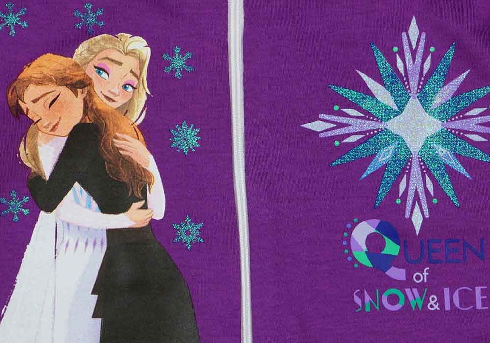 Jégvarázs II. mintával nyomott, elöl cipzáras overálos lányka pizsama.