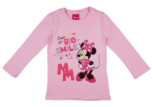 Rózsaszín, hosszú ujjú kislány póló, vidám Minnie egér mintával, amitől garantáltan a kislányok kedvence lesz! Eredeti Disney termék, ami minőségi, enyhén rugalmas 100% pamut anyagból készült, így szín- és formatartó, könnyen kezelhető. Praktikus alapdarab a kislányok ruhatárában, amit nadrággal, szoknyával egyaránt kombinálhatunk. Minőségi magyar termék, I. osztályú minőséggel.