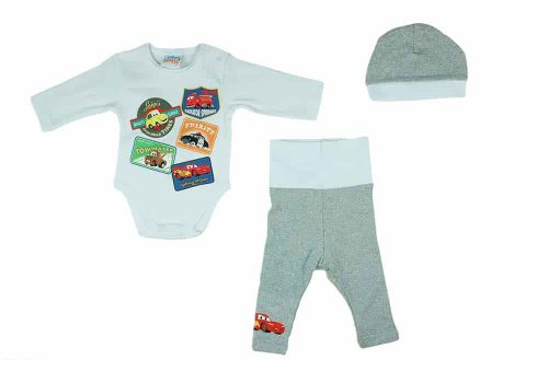 Egy kisautó rajongó különleges napját teheti még emlékezetesebbé ezzel a szürke színű, Verdák mintával díszített 3 részes babaszettünkkel. Az eredeti Disney termékből kialakított szett egy hosszú ujjú, vállon patentos baba bodyt, egy belül bolyhos baba nadrágot és egy belül bolyhos baba sapkát tartalmaz. A lágy és kényelmes 100% pamut anyagból készült body és a 90% pamut, 10% elasztán anyagú nadrág és sapka garantálja a baba kényelmét és mozgásának szabadságát. A termék minőségét az I. osztályú minősítés is igazolja. Magyar gyártású, az Andrea Kft. gondos munkájának eredménye. A termék nikkelmentes patenttal készül, így nem okoz allergiás reakciót az erre érzékeny babáknál.