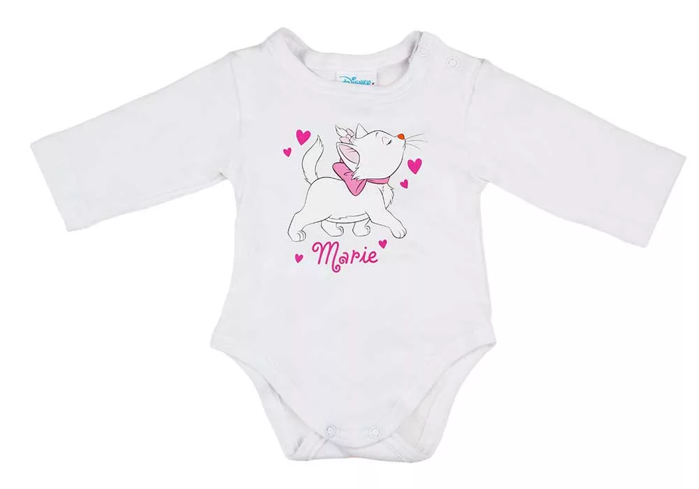 Kényeztesse kisbabáját ezzel a 3 részes, Marie cica mintás babaszettel, mely egyedülállóan kényelmes és stílusos viseletet biztosít. Az eredeti Disney termék megjelenése minden baba számára vidám és játékos atmoszférát teremt. A szettben található vállon patentos hosszú ujjú baba body, sapka és nadrág, mind a nagyon népszerű Marie cica mintával vannak díszítve. A szett anyaga puha és bőrbarát, 100% pamut, míg a nadrág és a sapka 90% pamutból és 10% elasztánból készült, ami rugalmasságot és extra kényelmet biztosít. Mindegyik termék a legmagasabb első osztályú minőséget képviseli, és büszkén gyártják Magyarországon. Különösen figyelnek a baba érzékeny bőrére, ezért a termék nikkelmentes patenttal készül, így nem vált ki allergiás reakciót az erre érzékeny babáknál. Válassza ezt a minőségi magyar terméket, a babája megérdemli!