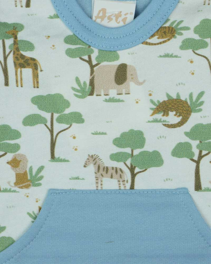 Ujjatlan belül bolyhos baba rugdalózó állatos mintával
