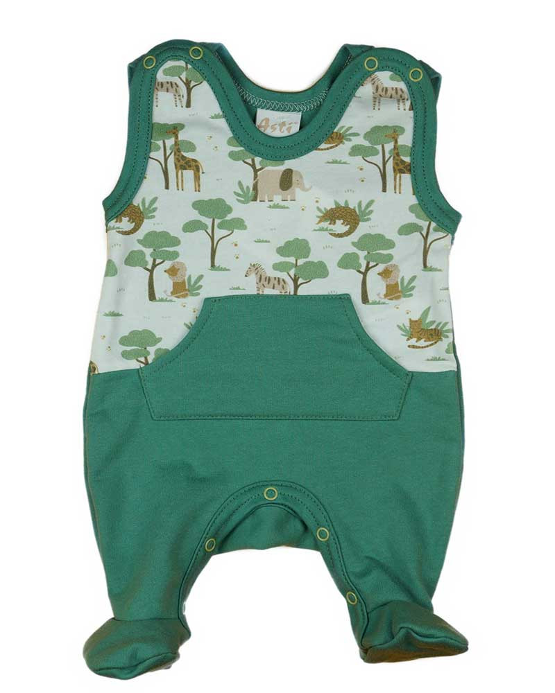 Bájos és kényelmes viseletet kínál ez az ujjatlan, belül bolyhos baba rugdalózó, melynek elejét egy játékos állatfigura díszíti. A zöld színű, zsebes kialakítású ruha lábközött patentos megoldása megkönnyíti a pelenkázást, így a kisbabák és szüleik is nagyra értékelik majd. A rugdalózó hosszú, de akár rövid ujjú bodyval is kombinálható, így egész évben tökéletes választás. A 65% pamut és 35% poliészter anyagú termék magas minőségű, nikkelmentes patenttal készült, így a legérzékenyebb bőrű babák számára is biztonságos. Büszkék vagyunk rá, hogy termékünk magyar minőséget képvisel.