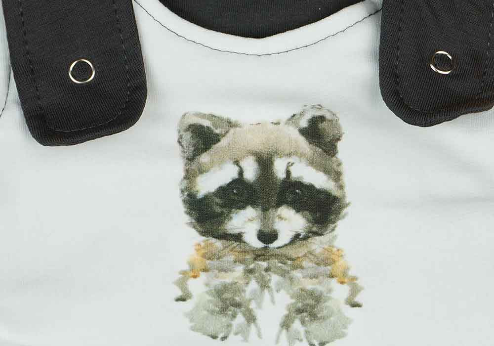 Ujjatlan baba rugdalózó állatos mintával 2:1 méret