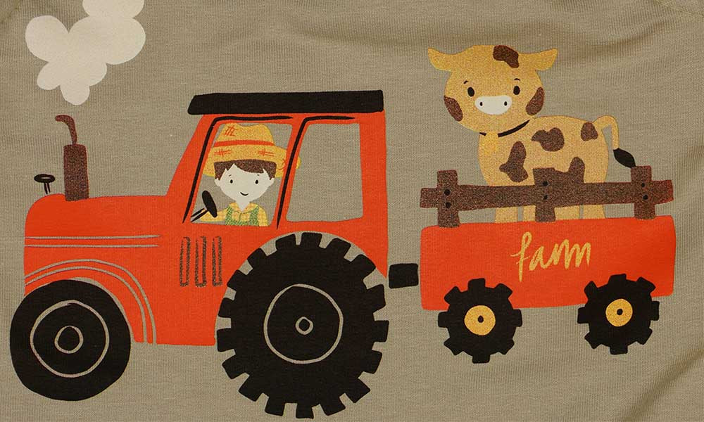 Ujjatlan baba rugdalózó traktoros mintával 2:1 méret