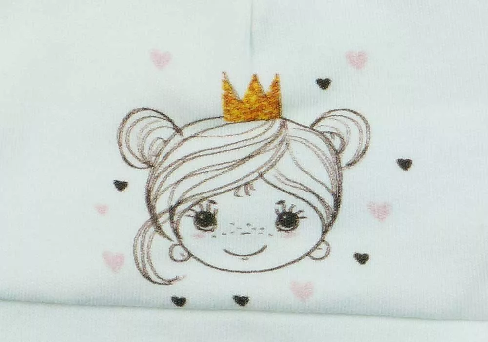 De ez még nem minden! Egy elöl patentos baba kocsikabát is helyet kapott a csomagban, mely szintén hercegnős mintával van ellátva. Természetesen a baba sapka és a baba kesztyű sem hiányozhat, hogy a legkisebbek is divatosak lehessenek a hidegben.