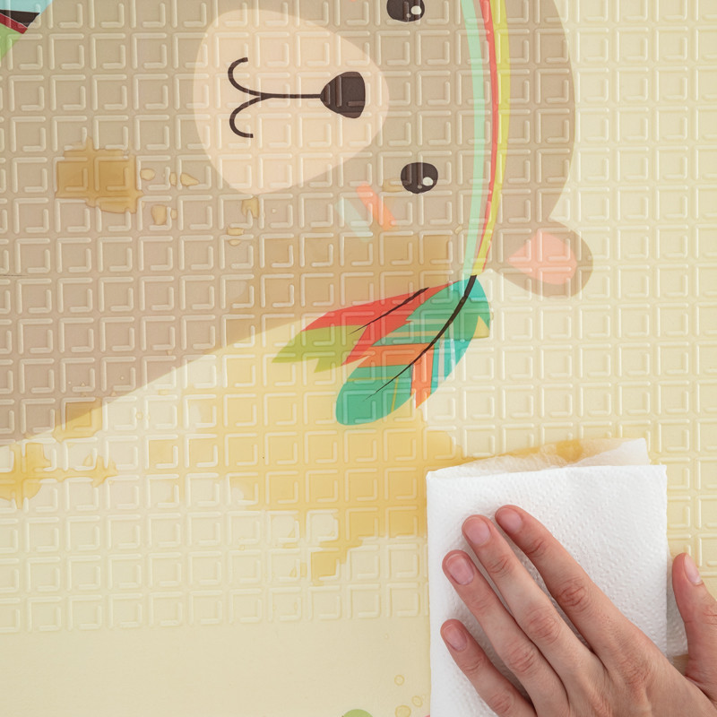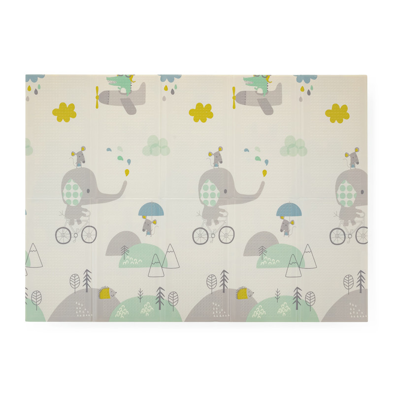 HU Description Puha összehajtható játszószőnyeg a baba biztonságos játékához. Újszülött kortól használható. A játszószőnyeg mindkét oldalon vidám motívumokkal ellátott nyomtatással, csúszásmentes felületkezeléssel, nagyszerű szigeteléssel és hangszigeteléssel rendelkezik, vízálló, puha felületű, rugalmas, mégis méretstabil, összehajtható, és mindenekelőtt biztonságot nyújt a gyermekeknek játék közben. A termékhez mellékelt praktikus táskába összehajtható. Könnyű súlyának és egyszerű összehajthatóságának köszönhetően a szőnyeg könnyen hordozható, és alkalmas beltéri és kültéri használatra.